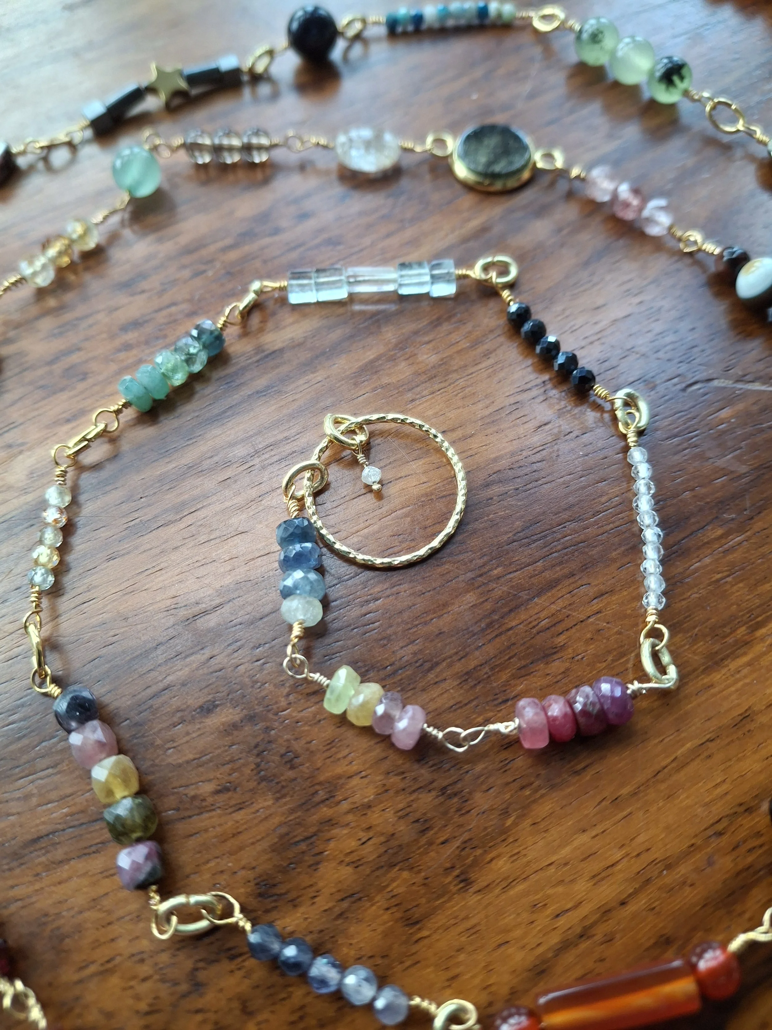 I'm planning to add to the necklace over time and am currently on the lookout for andalusite, rhodochrosite and a couple more pretty varieties of beryl to round out my collection, like morganite and heliodor. Would also love any ideas you have, so please drop me a line if you have a shiny rock to suggest!